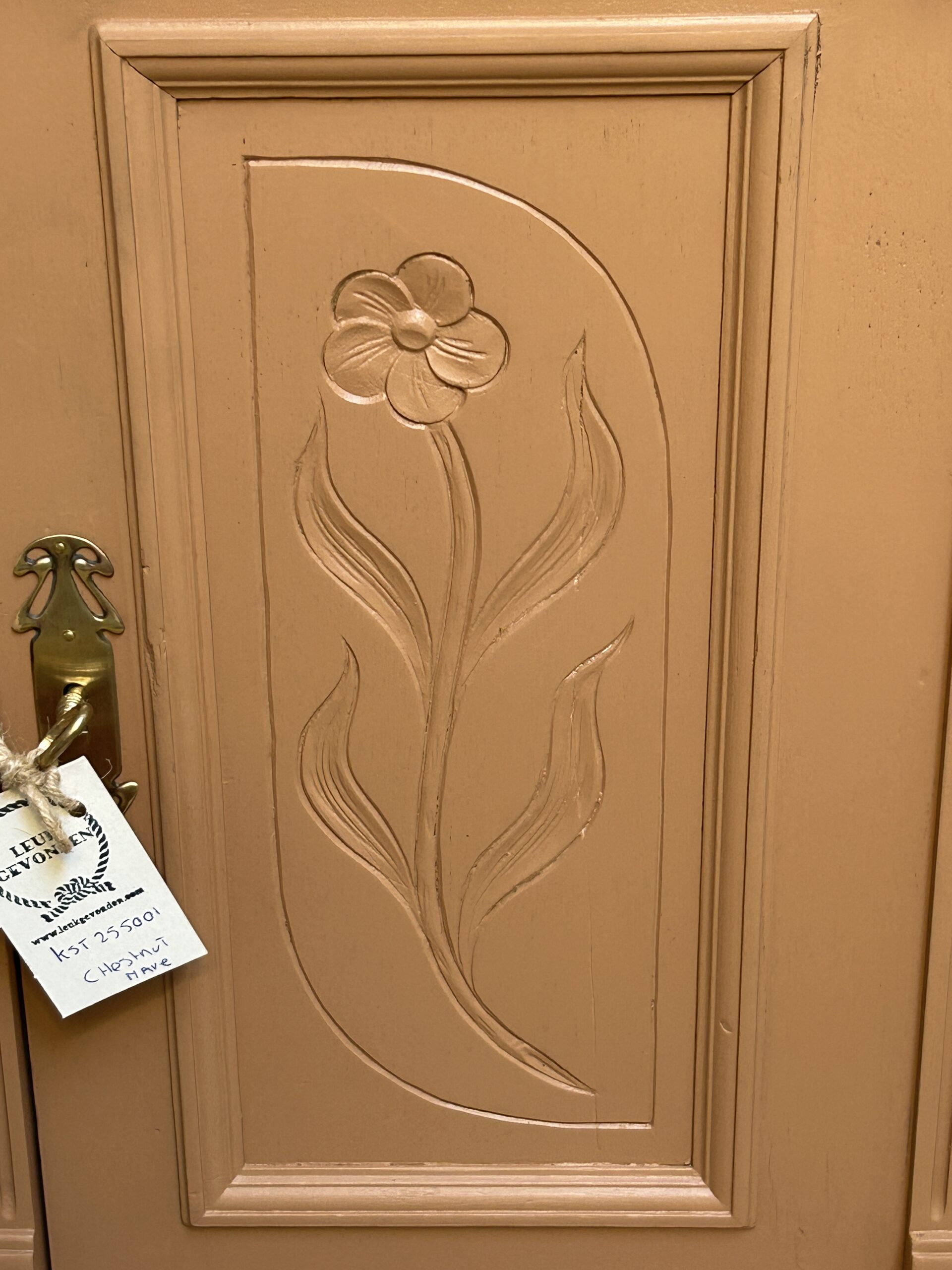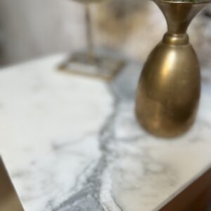 Wat de kastjes zo bijzonder maakt is de prachtige kleur in combinatie met het marmeren blad.