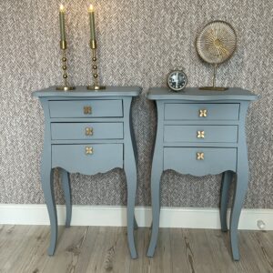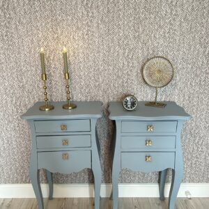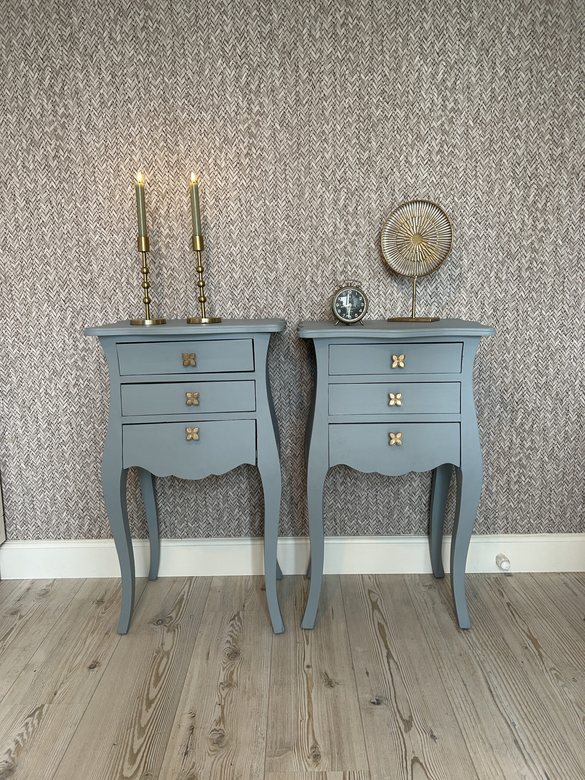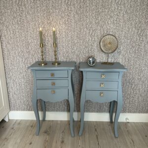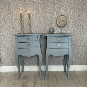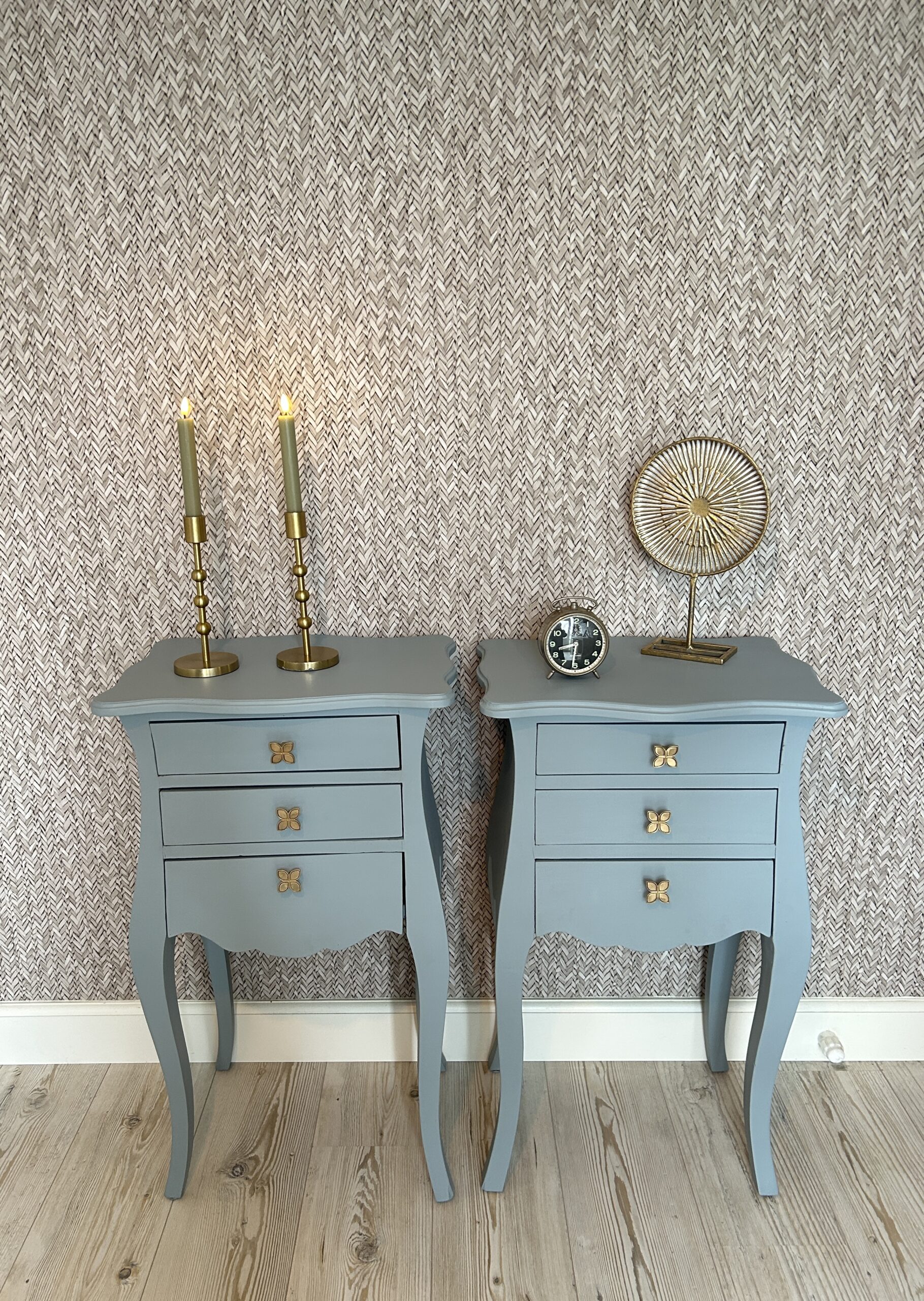Set nachtkastjes gerestyled door Leukgevonden en geschilderd in de kleur Paisly van Fusion minarel Paint.