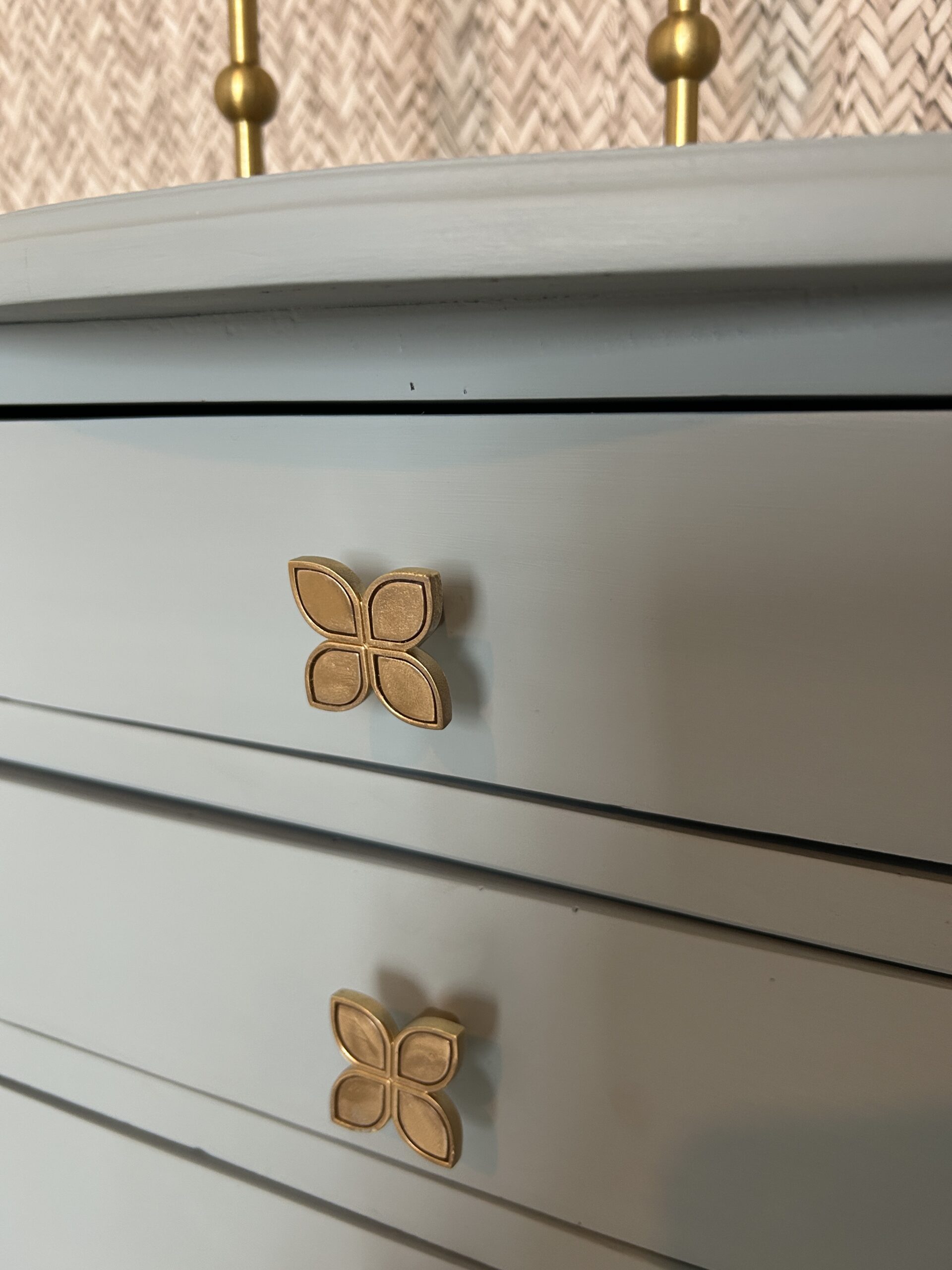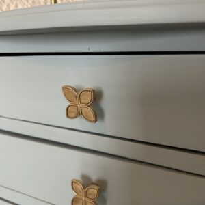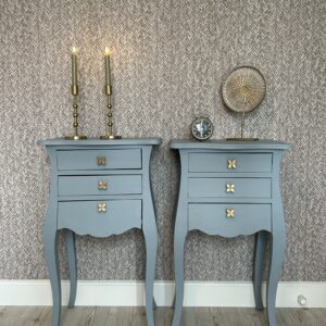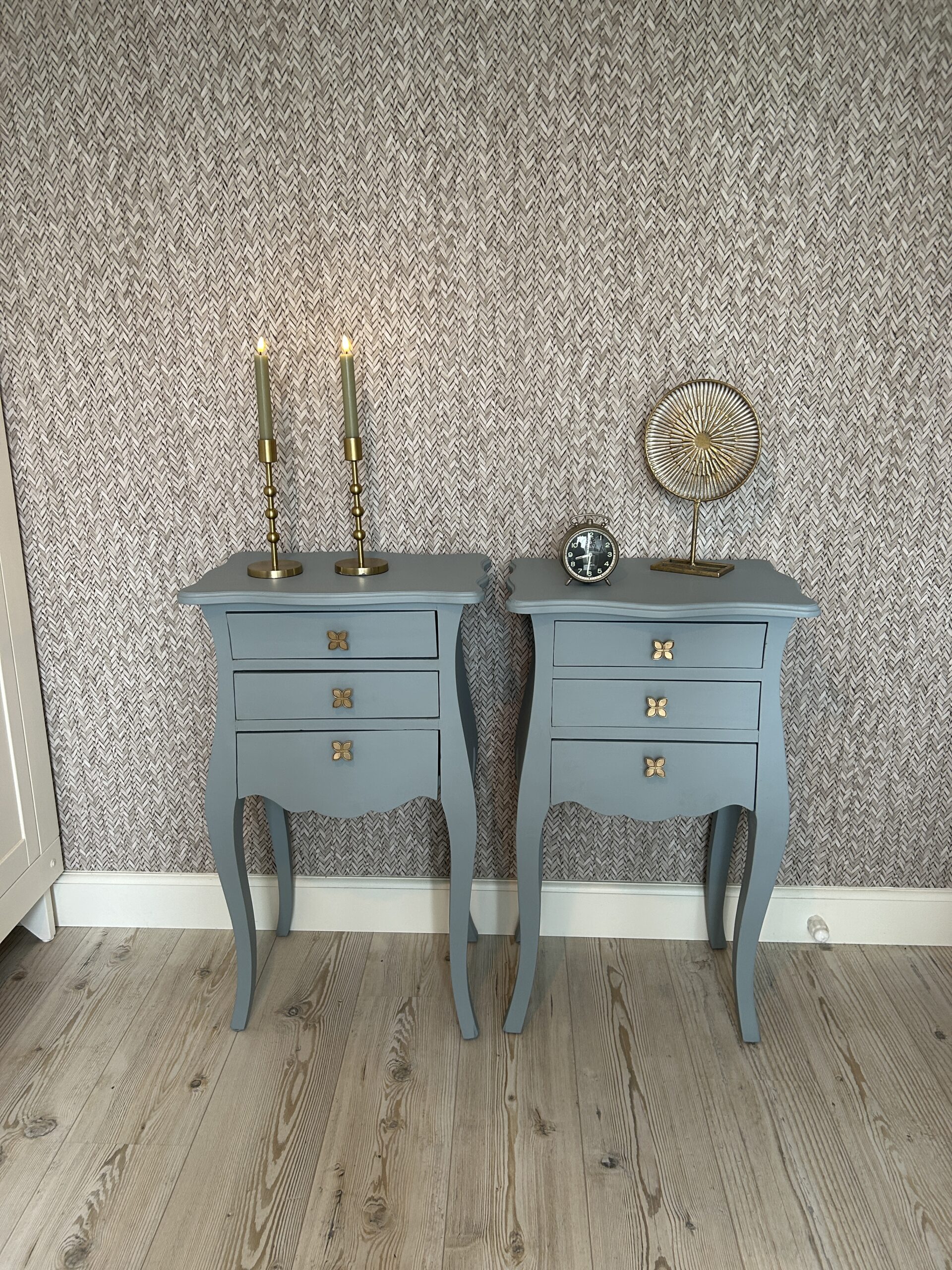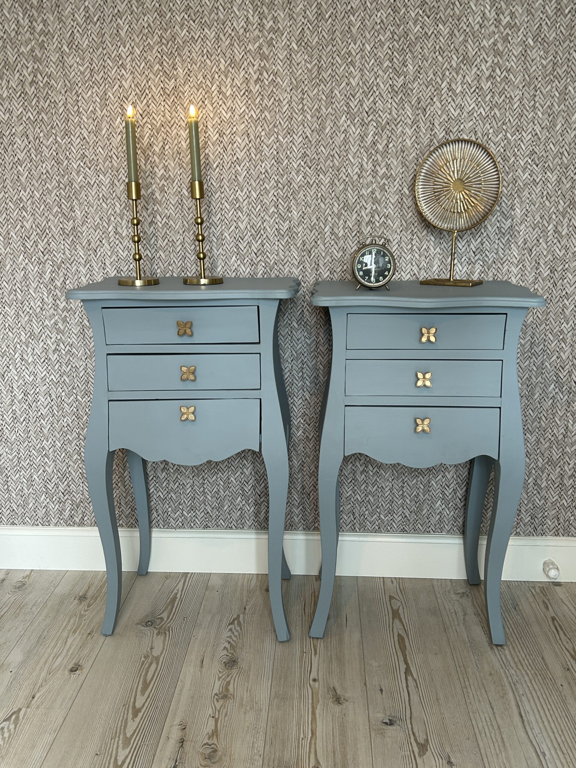 Set nachtkastjes gerestyled door Leukgevonden en geschilderd in de kleur Paisly van Fusion minarel Paint.