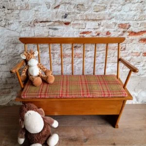 Ook al heb je verder niks in huis uit de jaren 60, dan nog is dit een onweerstaanbaar kinderbankje. Waarschuwing: er zitten wel beestjes in 🙂
